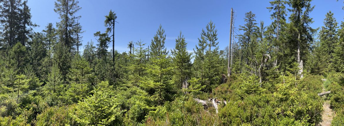 Den „Hohen Ochsenkopf“ und den dazugehörenden Beckerweg erreichen Sie direkt von unseren Ferienwohnungen in Herrenwies aus. Es erwartet Sie eine seit 1970 sich selbst überlassene Natur, die über einen schmalen Pfad erkundet werden kann. Wir empfehlen die Tour mit dem Aussichtpunkt Mehliskopf (Mehliskopfturm) zu kombinieren. Vom Mehliskopfturm beginnend gehen sie entlang des Kammrückens zu den Dreikohlplatten. Sie haben eine tolle Sicht auf die gegenüberliegende Hornisgrinde. Ab den Dreikohlplatten beginnt das Premium Erlebnis im Nordschwarzwald. Sie folgen dem Pfad der Richtung Osten zunächst kerzengerade und ansteigend in das Schutzgebiet führt. Im weiteren Verlauf können Sie den „hohen Ochsenkopf“ komplett umrunden oder überschreiten. Beide Wegführungen sind absolut zu empfehlen. Entweder steil aufsteigend zu den Überresten des gesprengten Turm oder vorbei am „Teufelskamin“ die komplette Umrundung des „Hohen Ochsenkopfs“.
